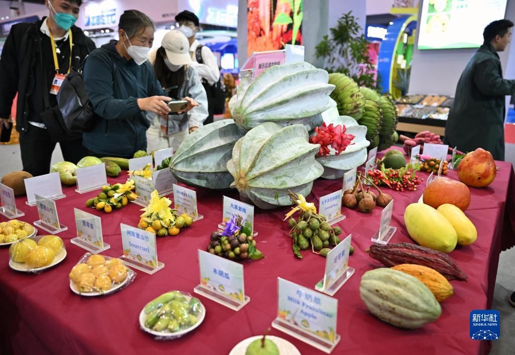 冬交会是中国唯一的冬季热带农业展会,此前已成功举办24届。图为12月15日,观众参观世界热带水果之窗展台展示的热带水果。新华社
