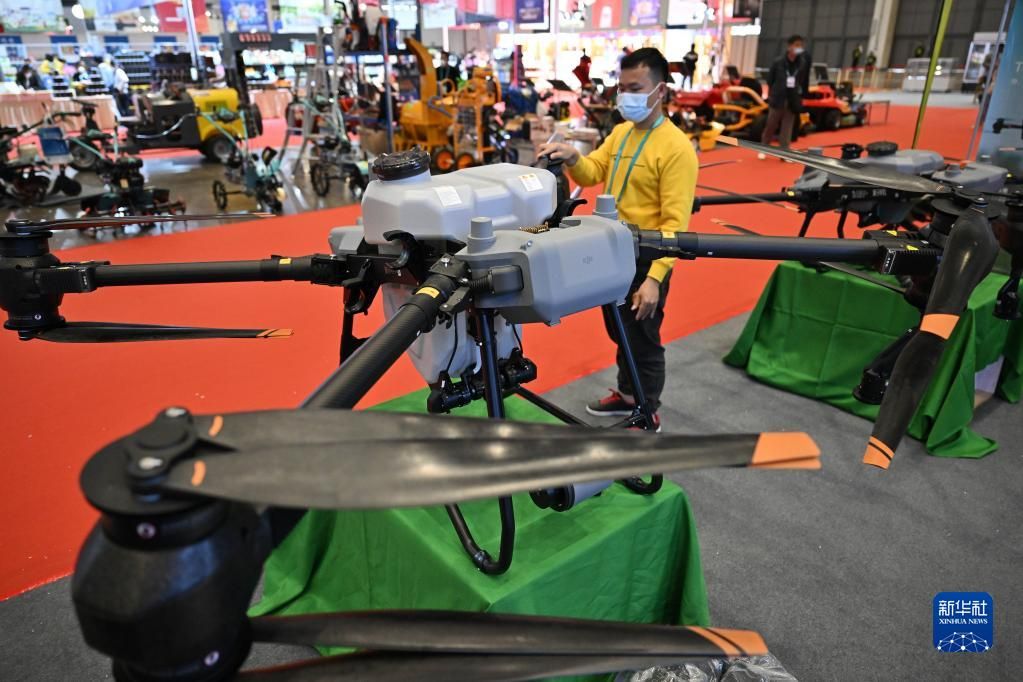在科技强农馆展示的植保无人机。新华社