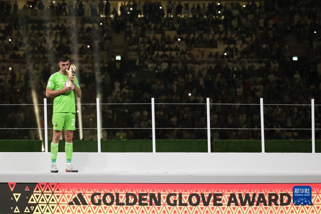 12月18日,获得世界杯金手套奖的阿根廷队守门员马丁内斯在颁奖仪式上。新华社