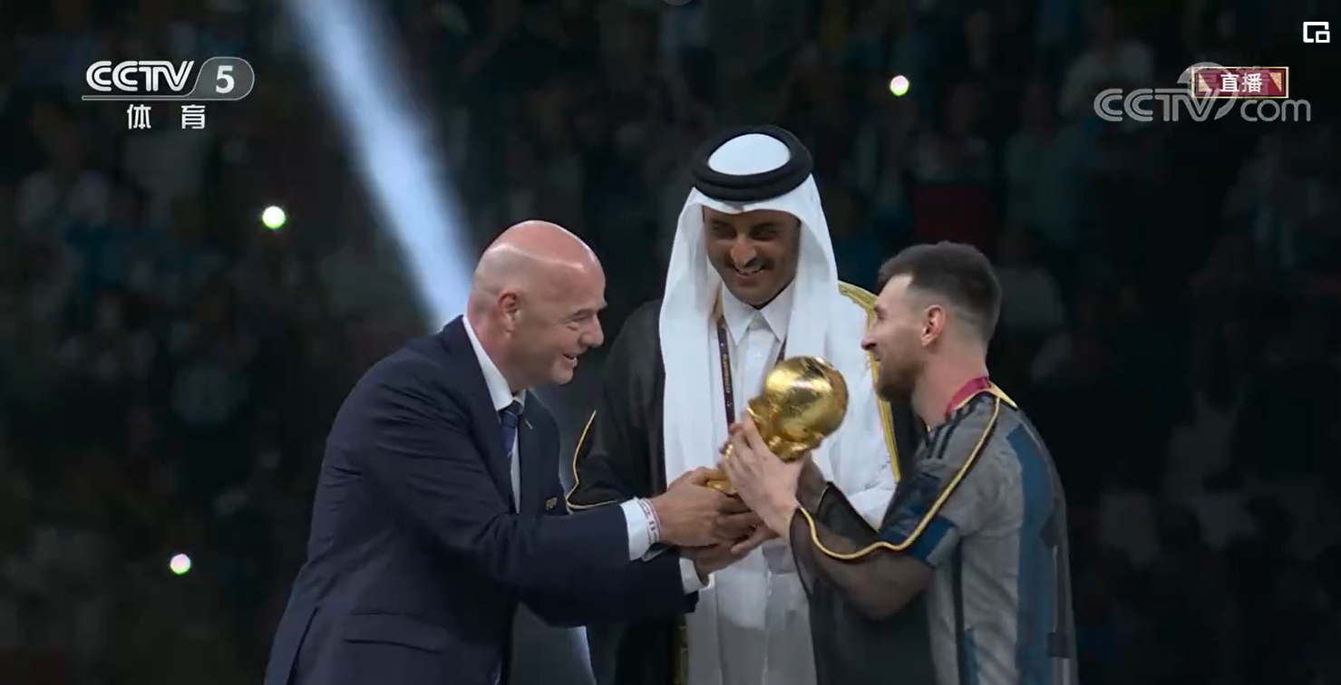 12月18日,阿根廷队球员梅西在颁奖仪式上。央视网截图