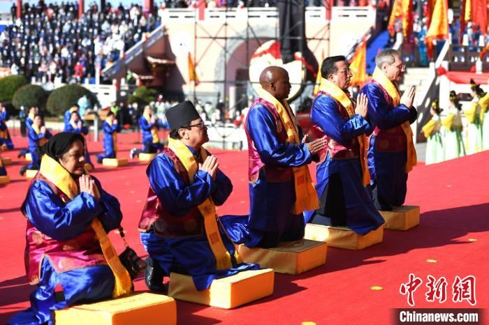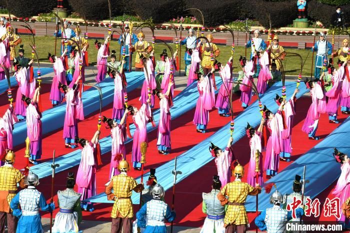 12月18日,中国国家级非物质文化遗产——妈祖祭典在福建省莆田市湄洲岛举行。妈祖祭典与黄帝陵祭典、祭孔大典并称为“中华三大祭典”,每年都吸引大批海内外信众前来参加。当日,第二十四届中国·莆田湄洲妈祖文化旅游节在湄洲岛开幕。图为妈祖祭典上的乐舞表演。