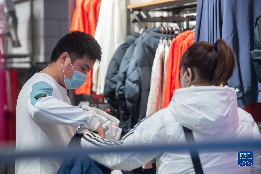 12月23日,在位于重庆解放碑商圈主打运动品牌的重庆八一广场内,市民游客选购商品。新华社