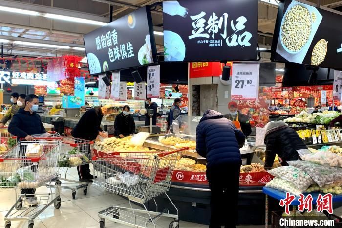 12月25日,福建福州,市民在超市购物。受线上购物运力下降的影响,福州线下实体店购销两旺。图为市民在超市购买豆制品。中新网