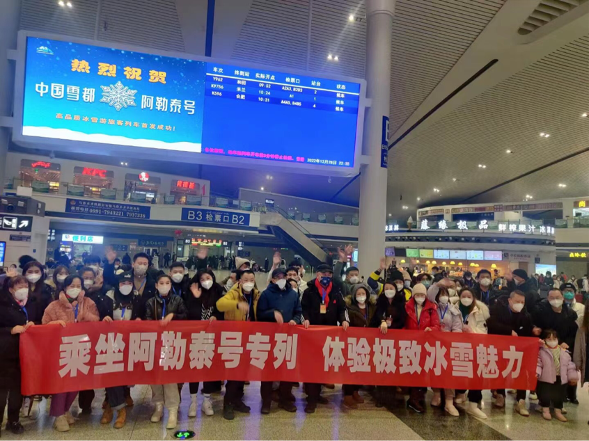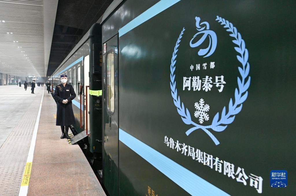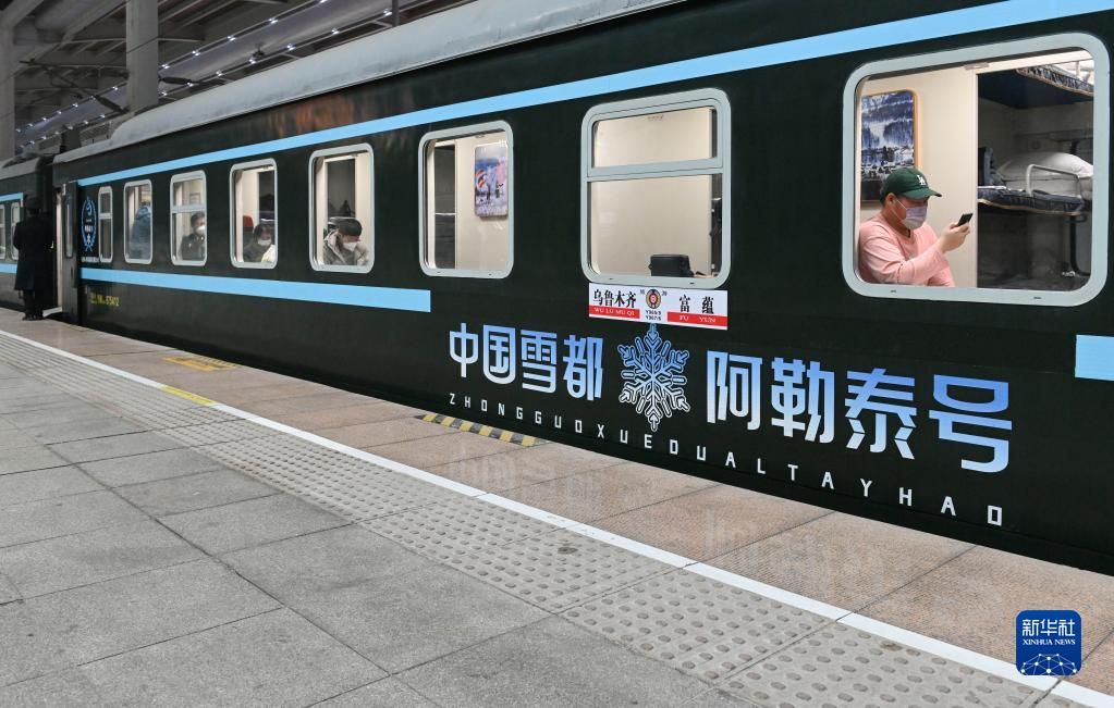 12月28日,“中国雪都·阿勒泰号”冰雪游旅客列车从新疆乌鲁木齐出发,驶向阿勒泰地区富蕴县。运行距离908公里,全程经停2个客运站,为游客留足昼间冰雪游、晚间乘车休息时间。
