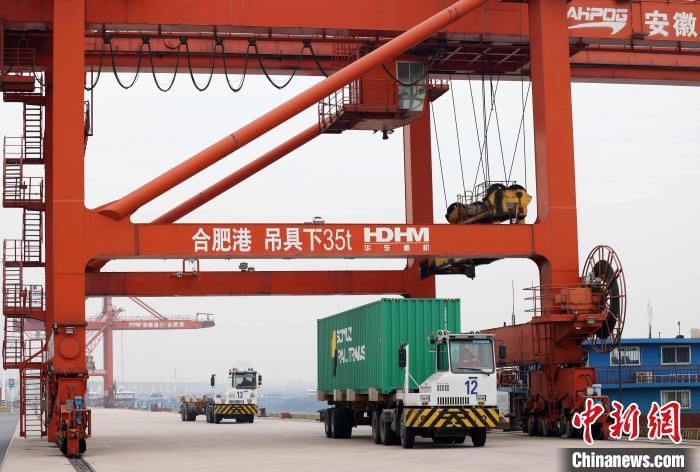 1月1日,在合肥港国际集装箱码头,货车在装卸集装箱。中新网
