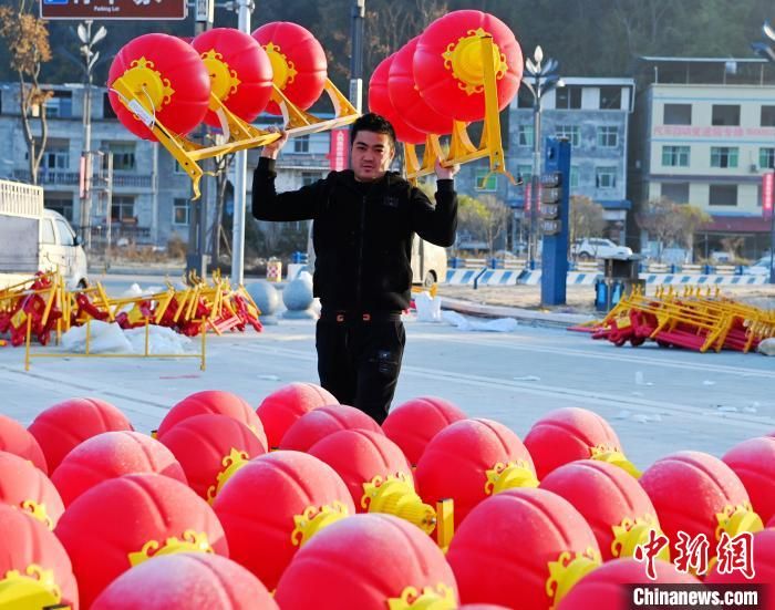 大红灯笼高挂,营造了喜庆祥和的节日氛围。中新网