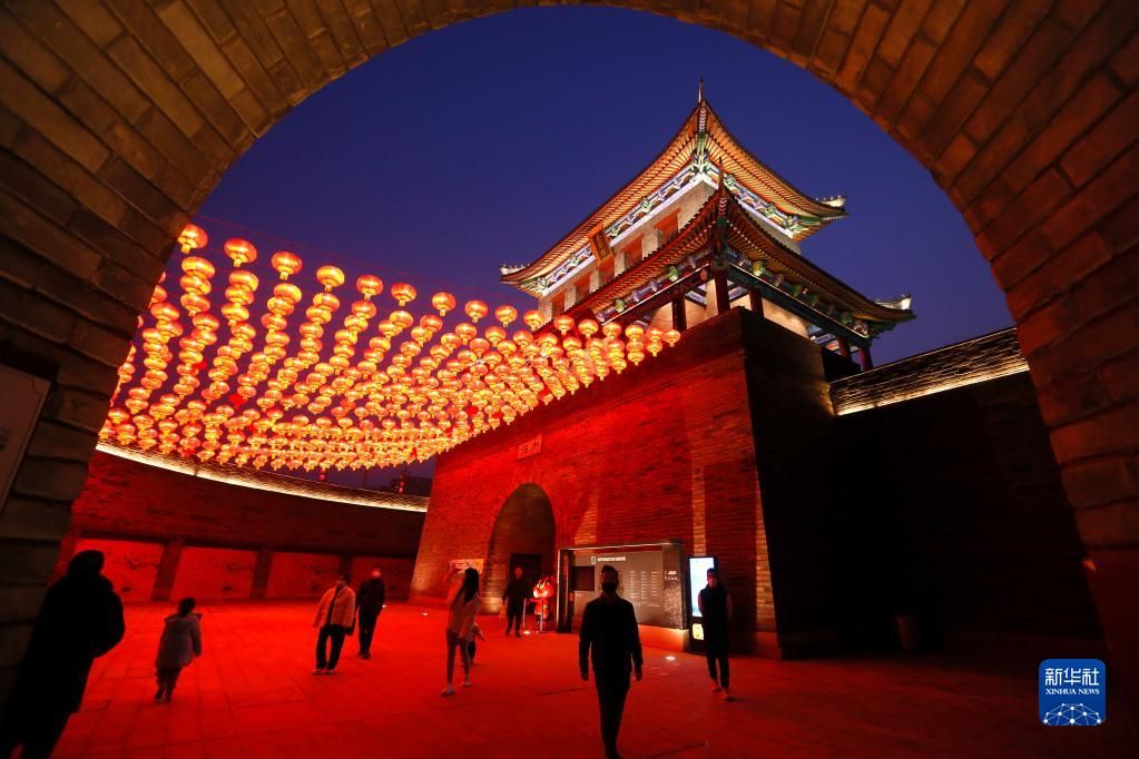 1月8日晚,游客在山东省青岛市即墨古城游览。随着春节临近,山东即墨古城张灯结彩,洋溢着喜庆的年味。新华社