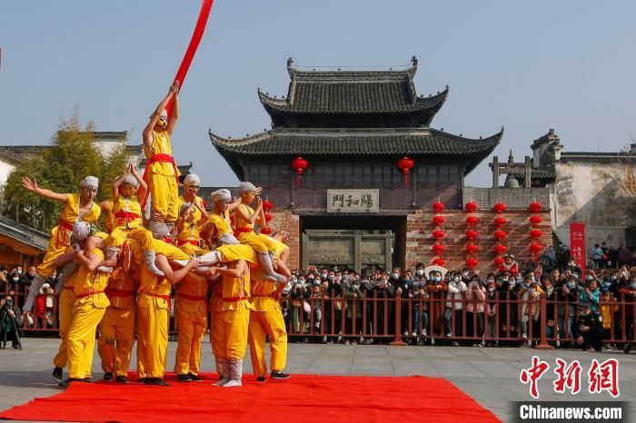 民俗表演叶村叠罗汉。中新网