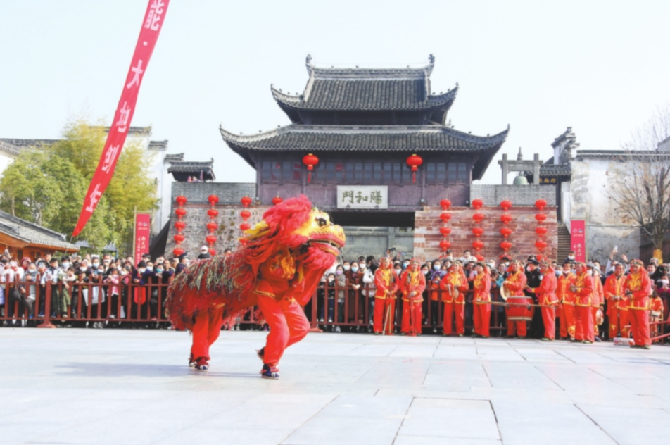 1月10日,歙县英坑村村民在徽州古城表演狮舞。《安徽日报》