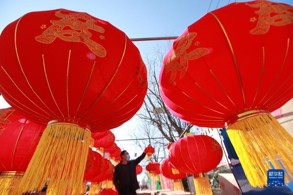 1月10日,在山东省临沂市平邑县地方镇,人们在年货大集上选购大红灯笼。新华社