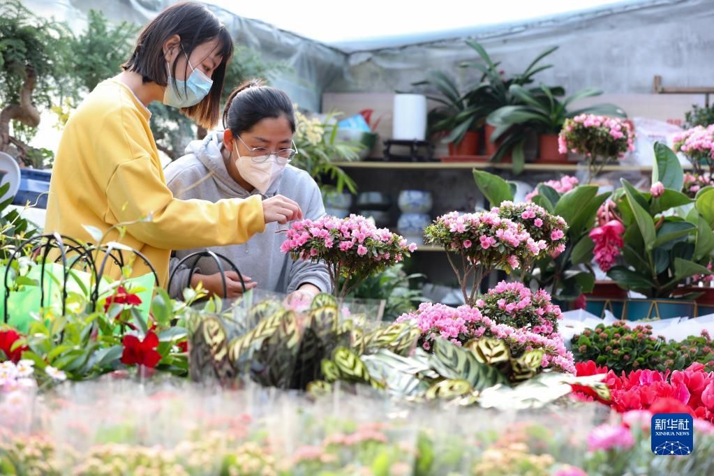 1月10日,人们在河北省石家庄市赵县韩村镇小吕村花卉基地选购鲜花。新华社