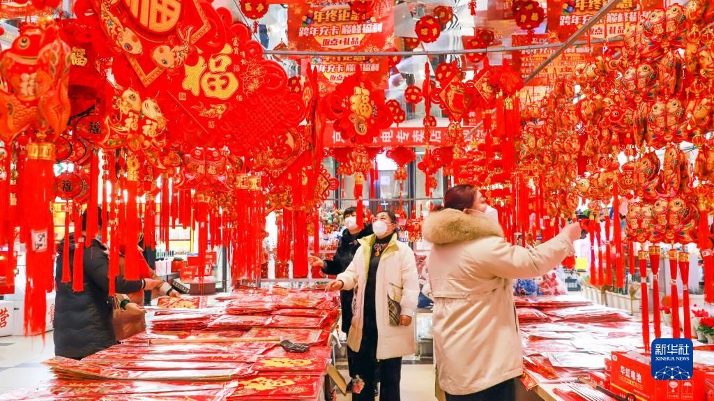 春节临近,中国各地年货市场红红火火,人们忙着选购年货,喜迎新春佳节。