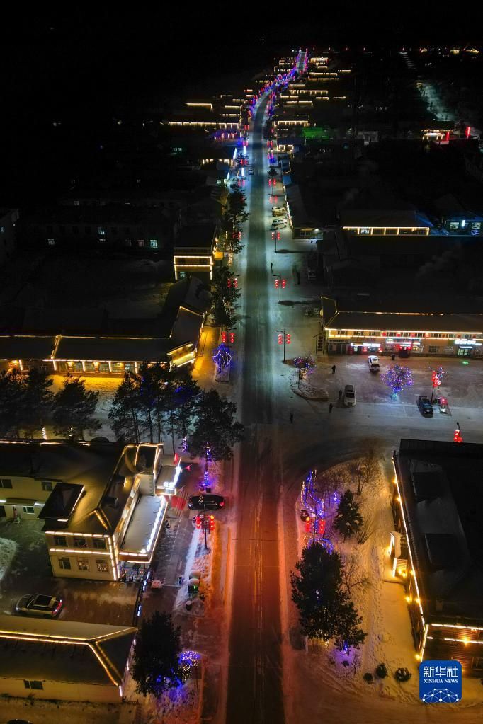 1月7日拍摄的黑龙江省漠河市北极村夜景(无人机照片)。