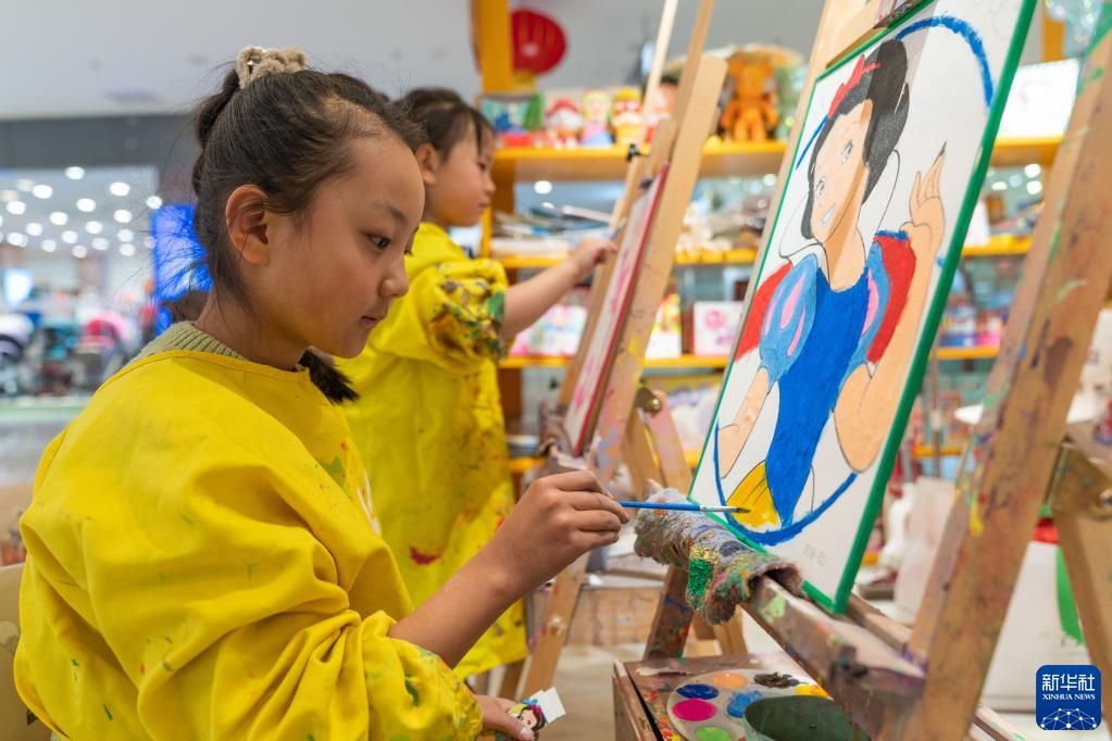在拉萨城关区万达广场,小朋友在一家美术工作室学习画画(1月11日摄)。