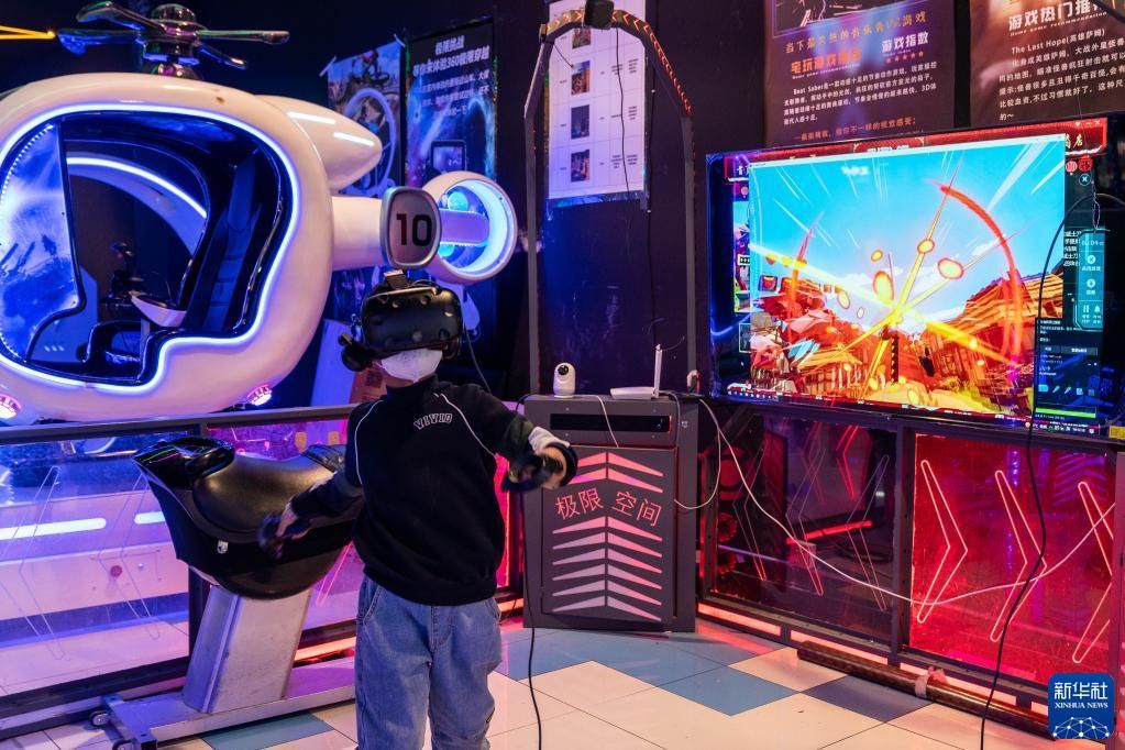 在拉萨城关区万达广场,小朋友在VR体验馆玩VR游戏(1月11日摄)。