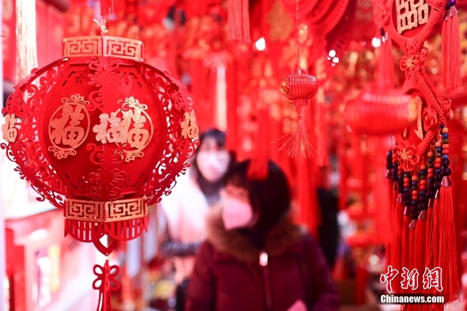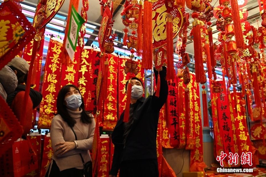 年味,是高高挂起的中国结、风中摇摆的红灯笼、琳琅满目的新春礼品,还有备好的春联、福字、年画,过年的气氛就在喜气的“中国红”里被一整个拉满。