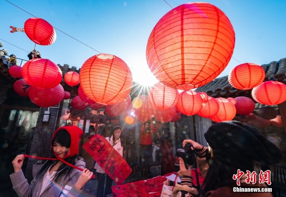 北京一家“藏在”四合院里的小咖啡店挂起红灯笼,营造出浓厚的中国传统新年氛围,吸引市民前往“打卡”。 中新网