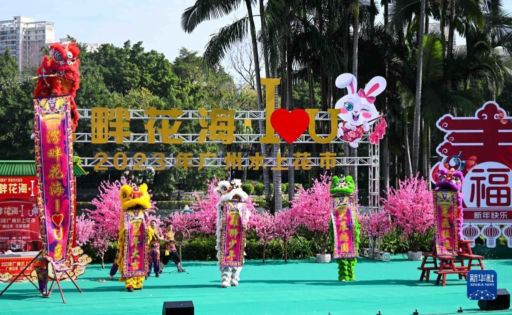 1月18日,广州市荔湾区,第十三届“荔枝湾·新西关”民俗文化活动暨2023年广州水上花市启动仪式在荔湾湖畔举行。本次活动依托“荔枝湾·新西关”民俗文化活动平台,展现特色民俗风情。