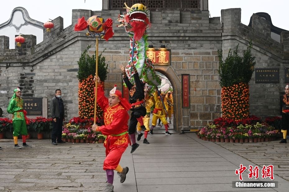 1月22日,农历正月初一,广东侨乡潮州,龙湖古寨舞龙贺新春。龙湖古寨内辟三街六巷,地形及建筑风格与古时潮州府很相似,有“潮州小城”之称。