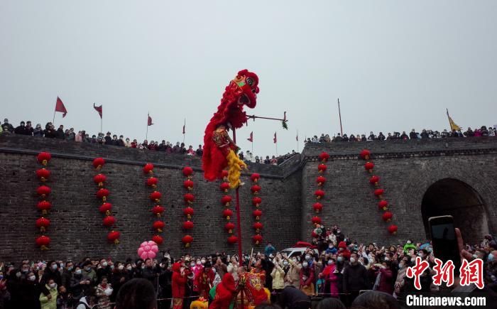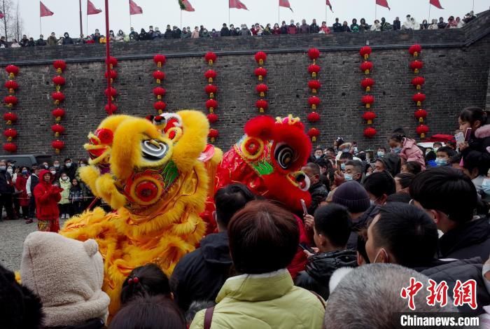 民众观看舞狮表演。