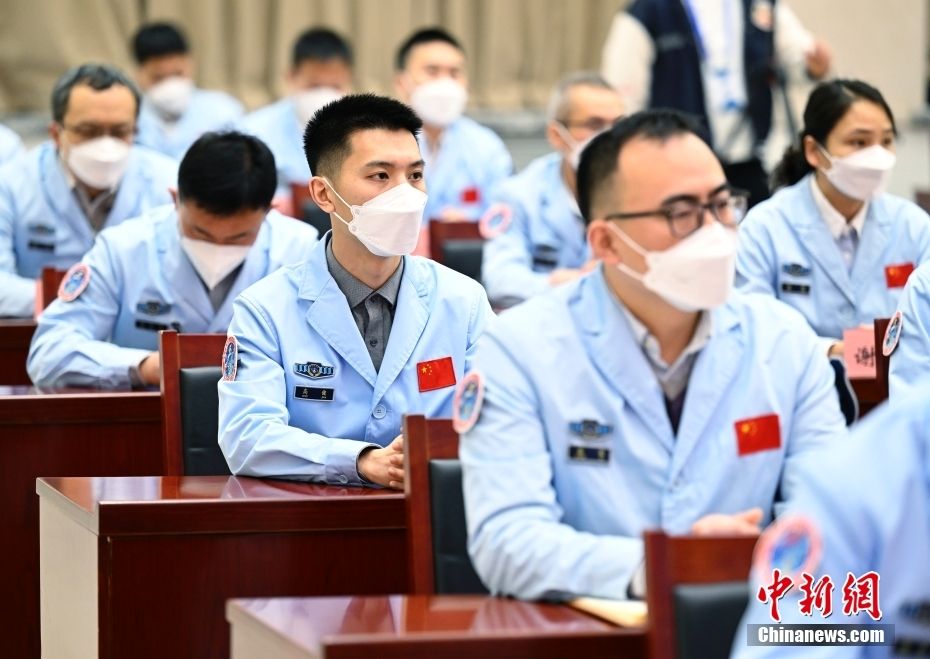 1月16日,北京航天飞行控制中心调度团队成员高健(左三)等青年科技人才群体参加先进事迹介绍会。