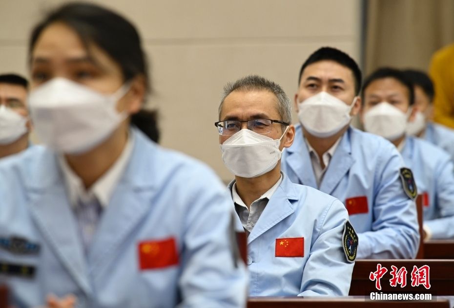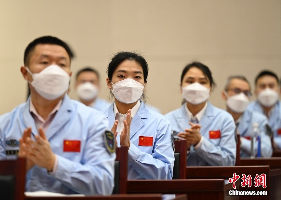 北京航天飞行控制中心调度团队成员鲍硕(左二)等青年科技人才群体参加先进事迹介绍会。