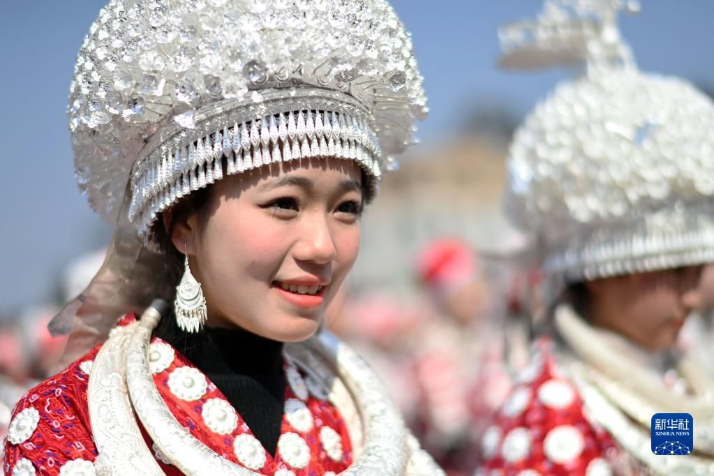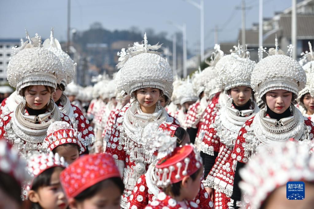 1月31日,苗族同胞在贵州省黔东南苗族侗族自治州黄平县谷陇镇盛装巡游。新华社