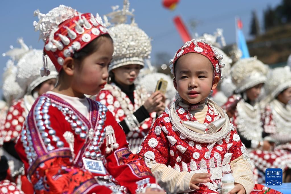 1月31日,苗族小朋友在贵州省黔东南苗族侗族自治州黄平县谷陇镇观看文艺演出。新华社