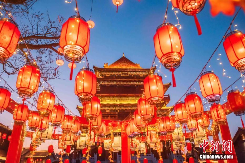 1月30日晚,许多市民、游客在日照莒国古城赏花灯,看“非遗”技艺、传统民俗展演。一盏盏新春花灯流光溢彩,将莒国古城装扮的璀璨夺目。中新网