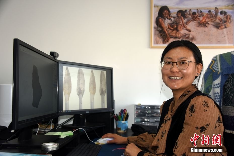 1月30日,杨石霞在中科院古脊椎所展示介绍用于本次研究的一件“修铤”萨拉乌苏石器样本。