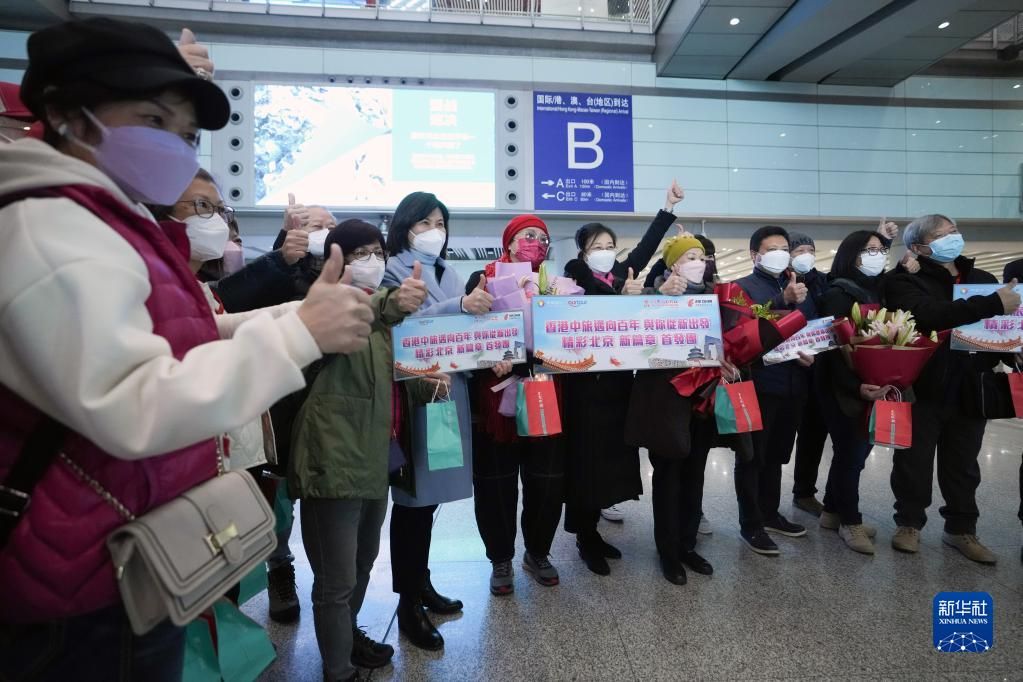 2月6日,内地与港澳人员往来全面恢复后,首个香港赴北京旅游团共17名游客抵达首都国际机场,开启他们四晚五天的北京之旅。