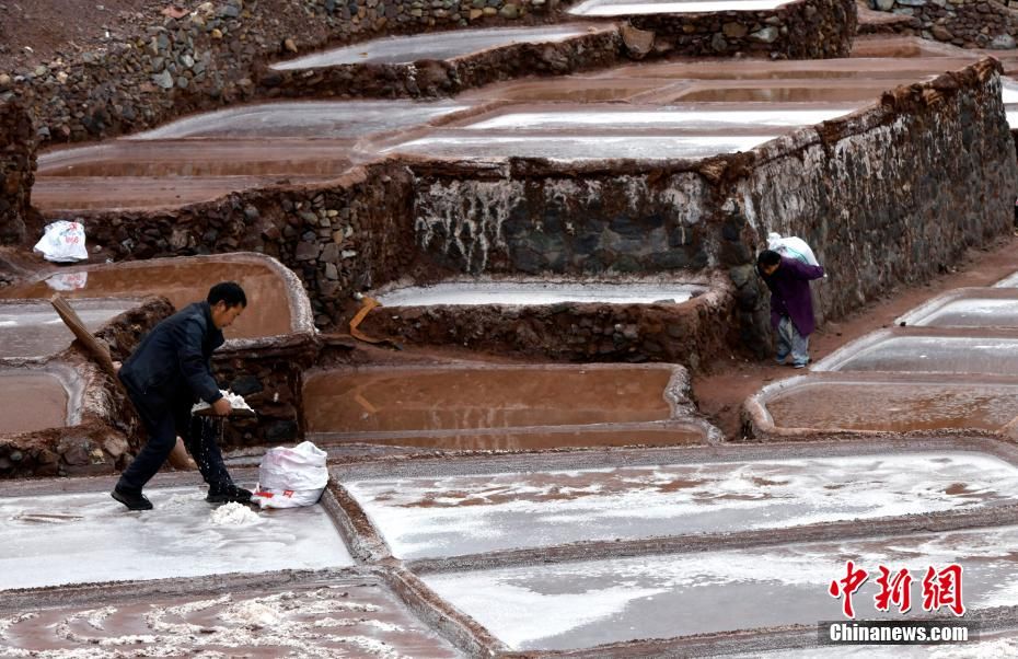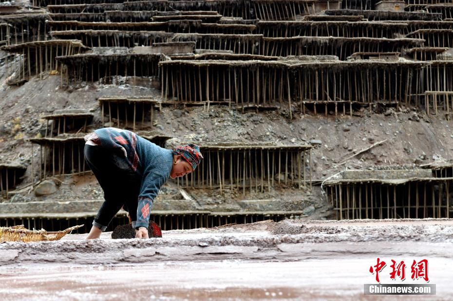芒康县纳西民族乡加达村村民正在盐田劳作。