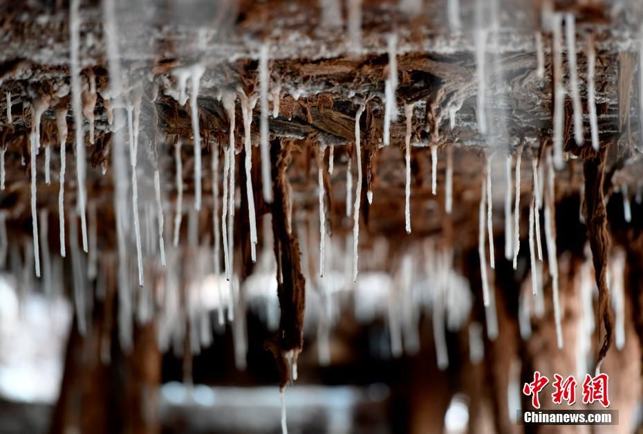 在西藏昌都芒康县纳西民族乡澜沧江两侧,有一处古老的、大大小小数千块盐田。史料记载,当地晒盐历史距今已有1000多年。木柱搭建的盐田,高低错落,依河谷山势,在临江两岸蔓延。当地民众从江畔的盐井、盐池中抽出卤水,引入盐田,经过阳光与风的杰作,结晶成盐。进入盐田,房内顶部到处悬挂钟乳状晶盐,仿若“水晶宫”的世界。图为2月13日,芒康县纳西民族乡加达村村民珍罗正在扫盐。