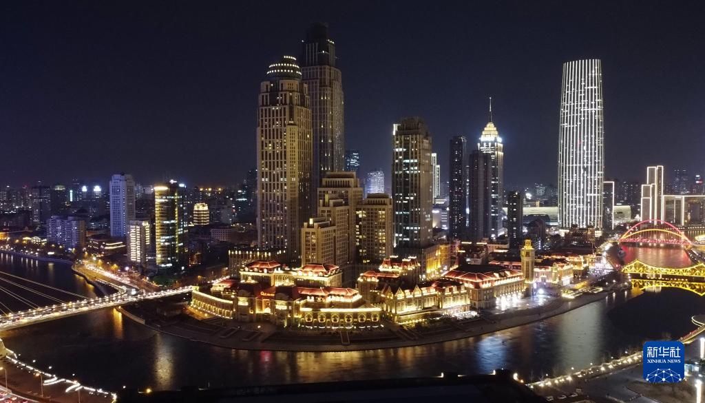 2月14日拍摄的天津市和平区津湾广场(无人机照片)。