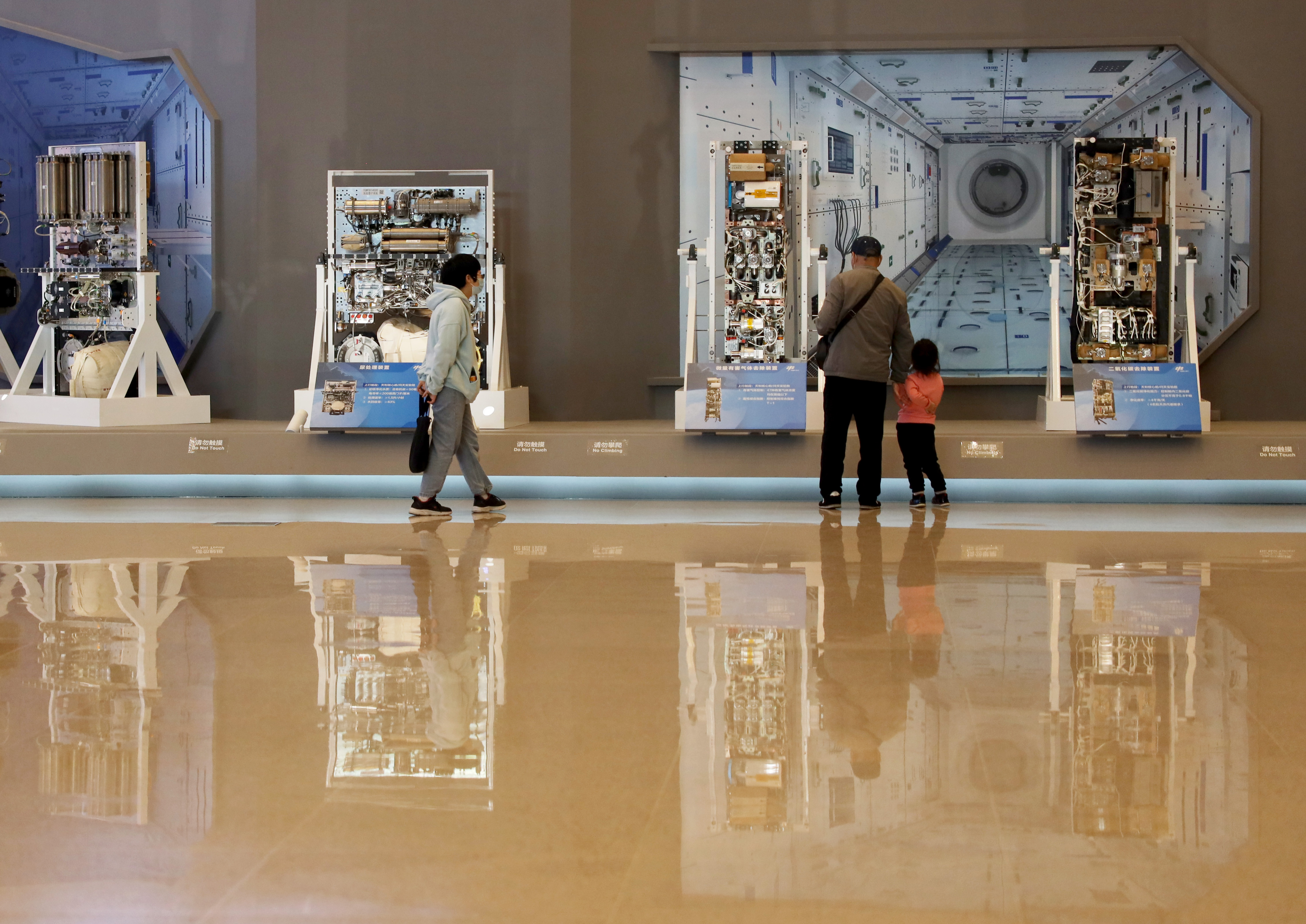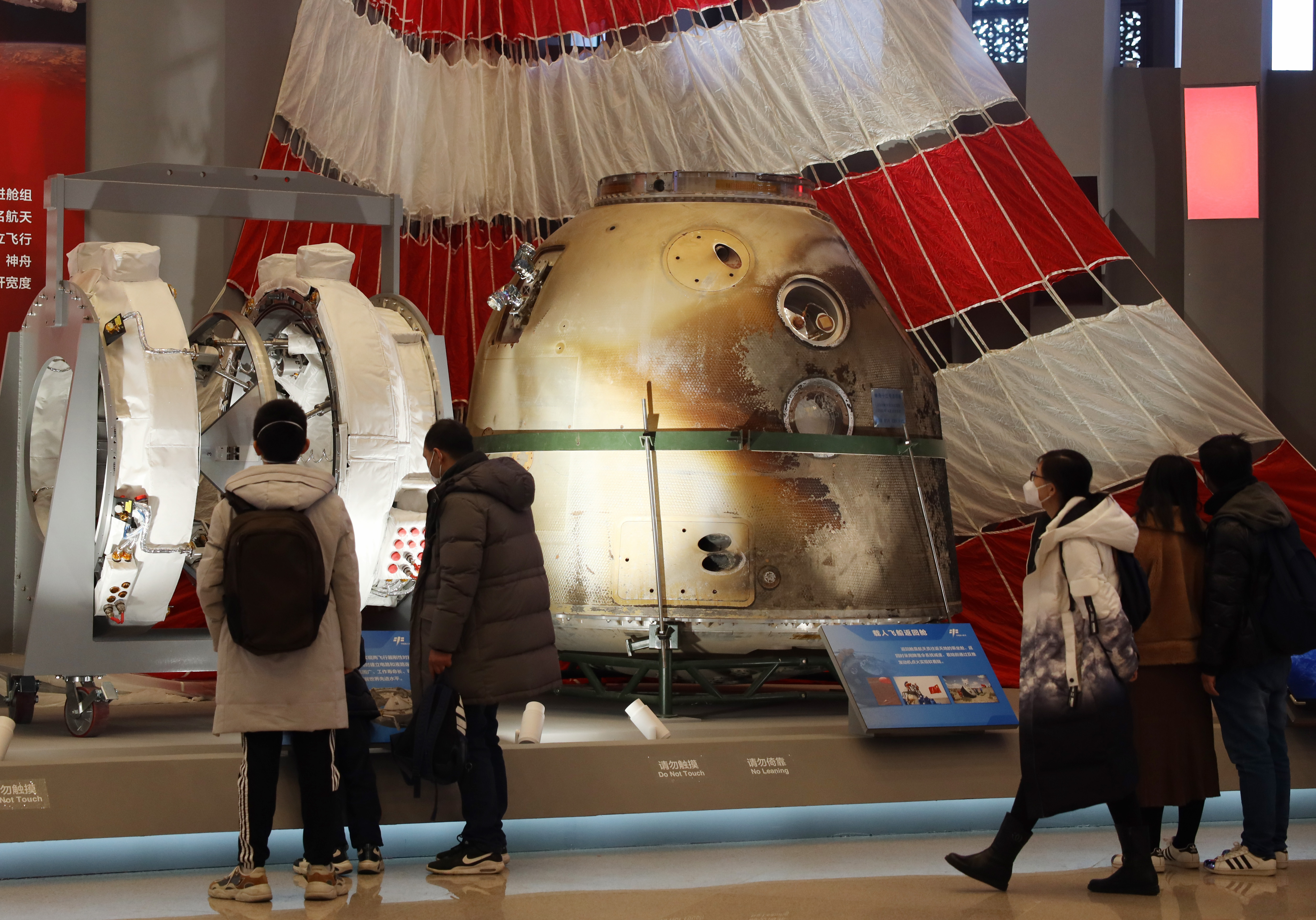 2月25日,“逐梦寰宇问苍穹——中国载人航天工程30年成就展”正在北京中国国家博物馆展出。图为当日,观众在中国国家博物馆参观“中国载人航天工程30年成就展”展品。 南美侨报特约记者 卞程宣摄