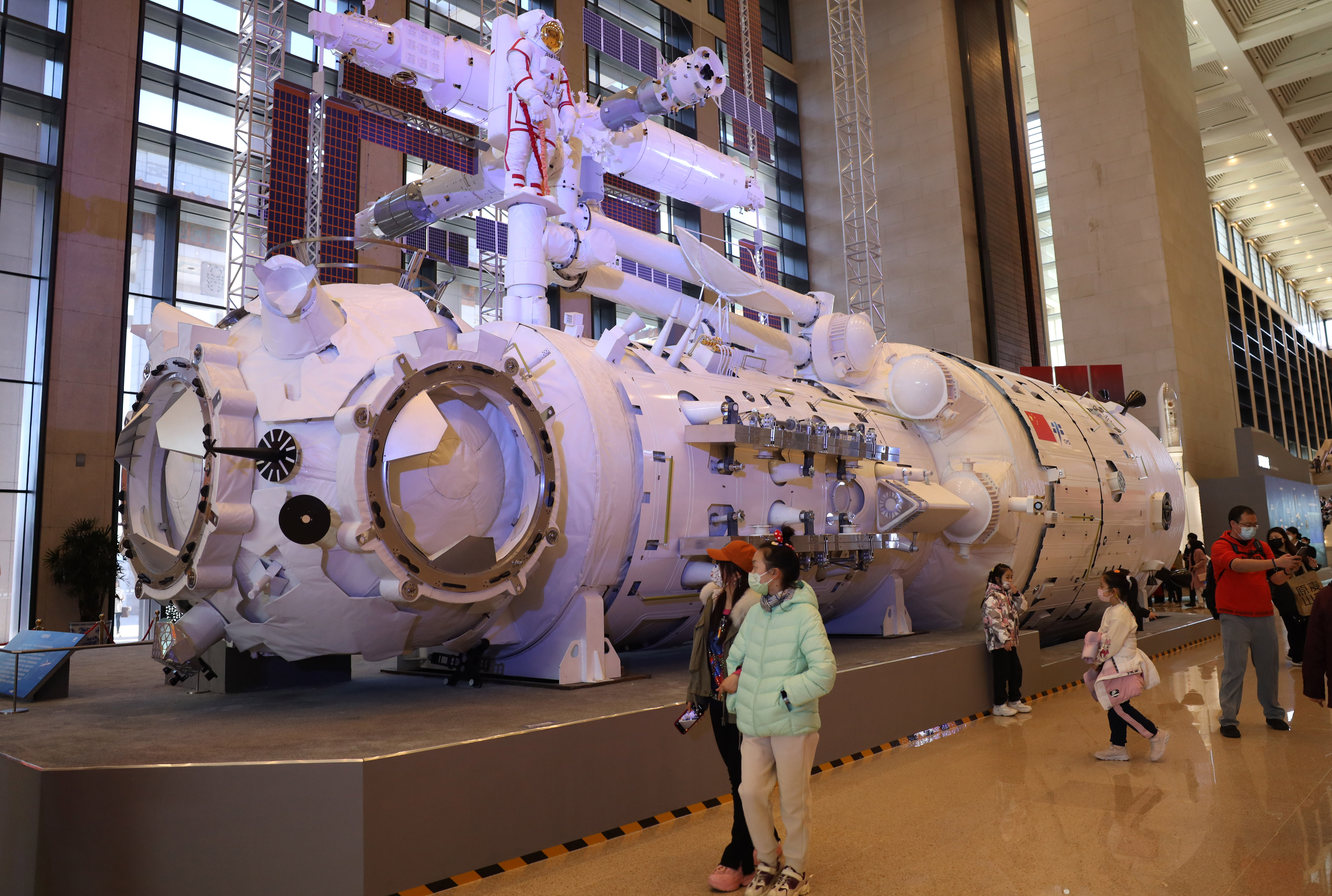 2月25日,观众在现场参观中国空间站天和核心舱1:1模型和空间站组合体1:4模型。 南美侨报特约记者 卞程宣摄