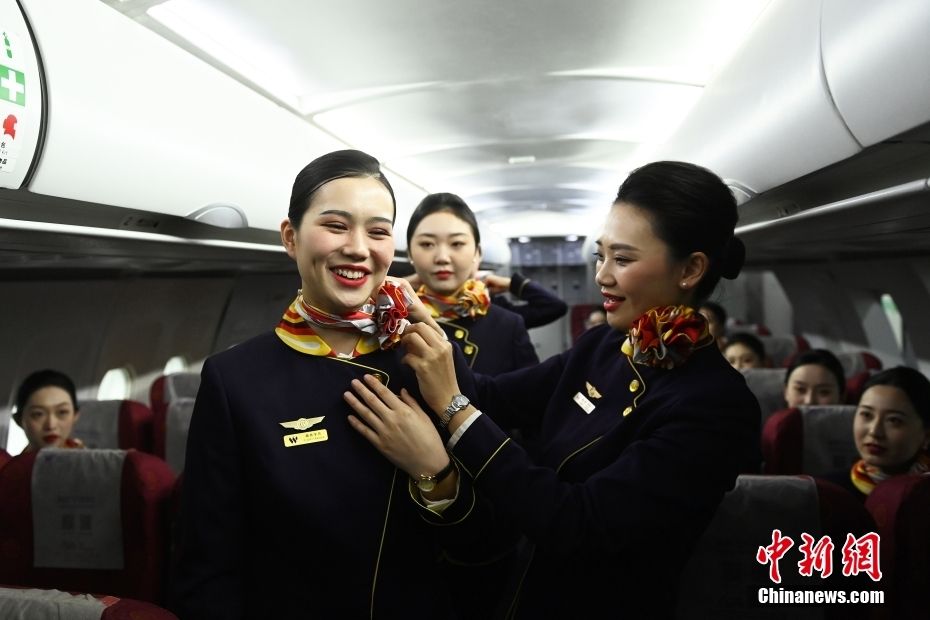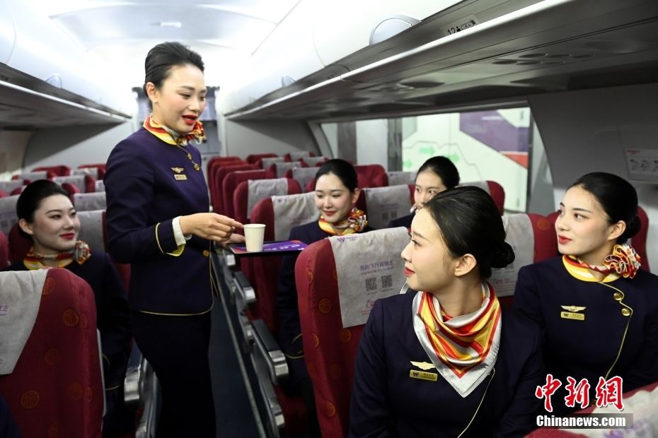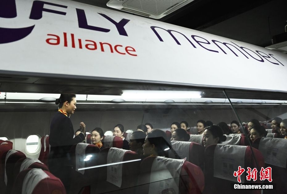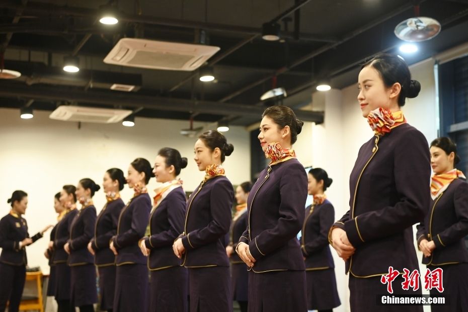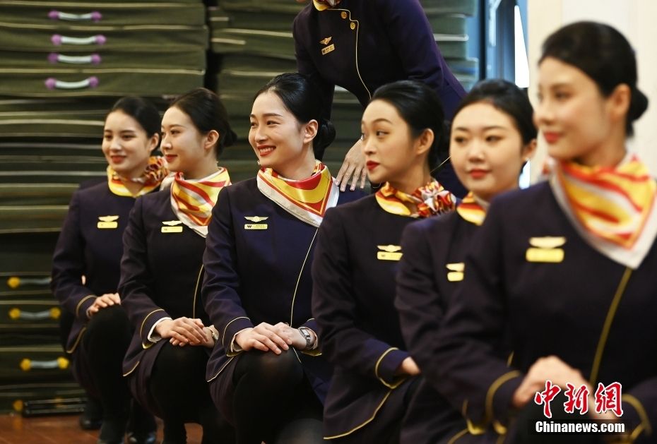 3月1日,在中国西部航空重庆生产基地飞机模拟舱和礼仪训练室内,29名乘务学员正在进行岗前培训,成为一名客舱乘务员并非一蹴而就,从“地面”到“空中”的完美蜕变,是日复一日的精密专训。