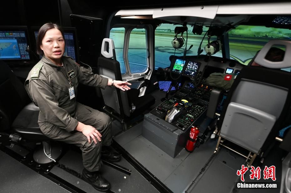 甄淑贤介绍直升机模拟驾驶舱。