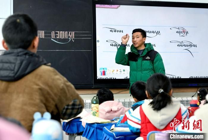 中国的西藏现代教育从起步开始即坚持双语(藏汉)教育,全面普及以国家通用语言文字为主的双语教育,巩固完善双语教育体系。在课程设置方面,西藏在小学开展加强藏语文、汉语文、数学和行为习惯养成教育,学生基本能掌握和使用国家通用语言文字。通过双语教育,藏语言文字得到了广泛普及,西藏孩子走进了更广阔的世界,西藏文化得到了更好的传承。 图为3月14日,西藏拉萨市第一小学藏语文老师拉巴次仁在课堂提问。
