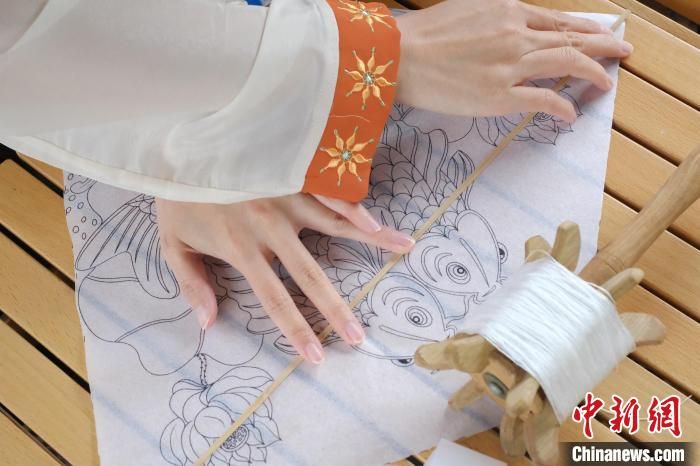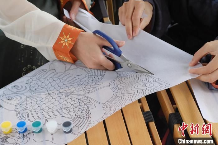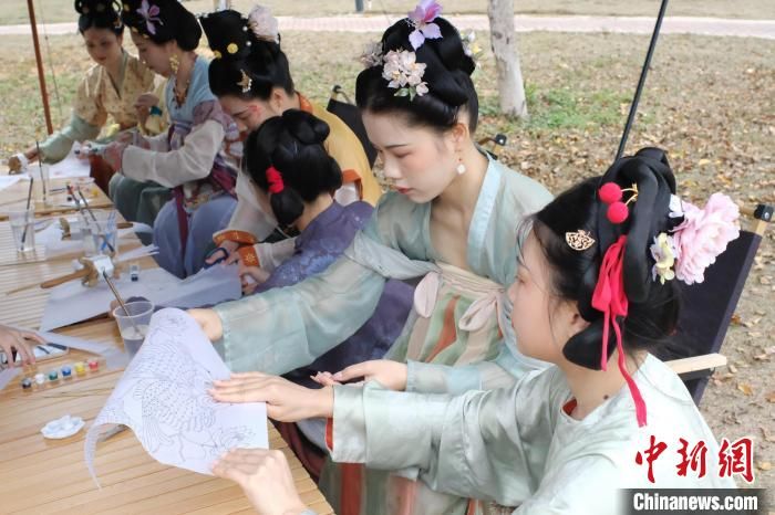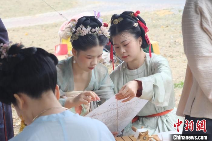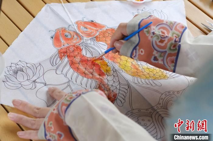 汉服爱好者给“纸鸢”涂上鲜艳靓丽的色彩。