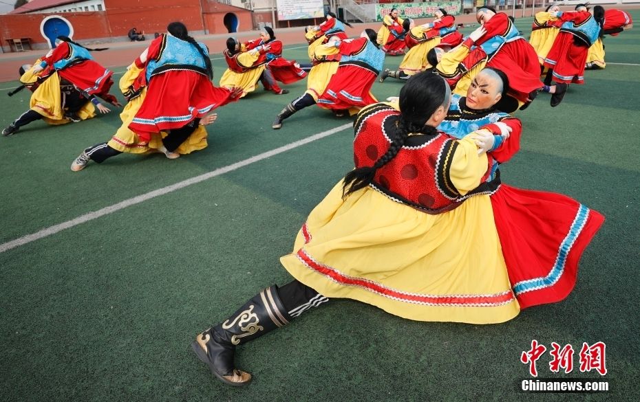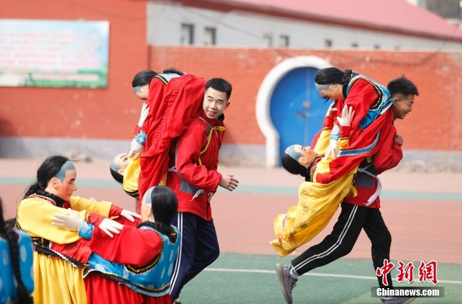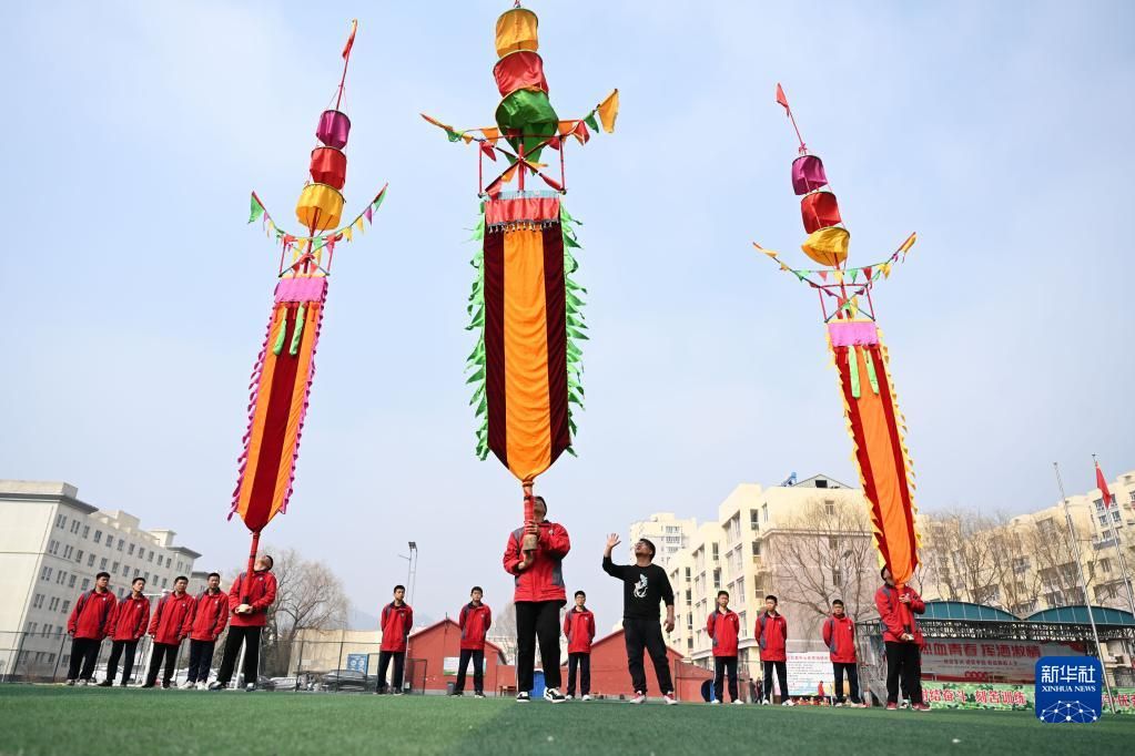 近年来,“非遗进校园”活动在河北省承德市隆化县持续开展,将中国国家级非物质文化遗产“二贵摔跤”等项目引入课堂,使学生亲身感受非遗文化的魅力与价值,让传统文化薪火相传。图为3月20日,隆化县职教中心学生在练习河北省级非遗项目“隆化中幡”。新华社