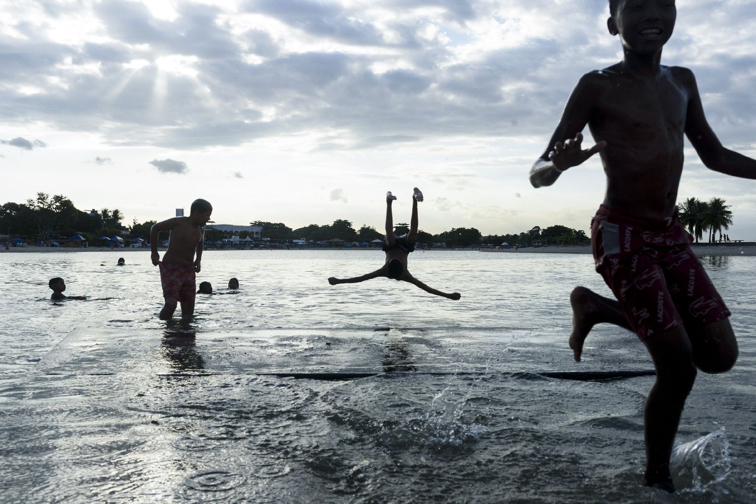 3月19日,在巴西里约热内卢,孩子们在瓜纳巴拉湾玩耍。这是夏天的最后一个周末。对于里约热内卢人来说,没有什么比在海滩上享受炎热的一天更好的方式来告别这个季节了。