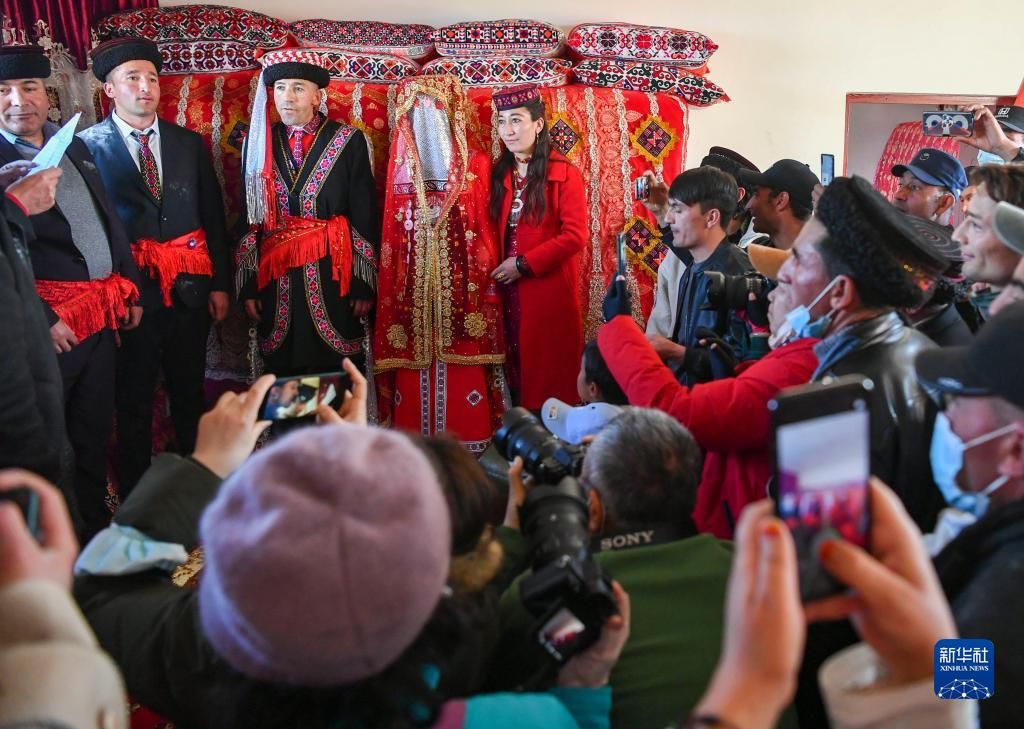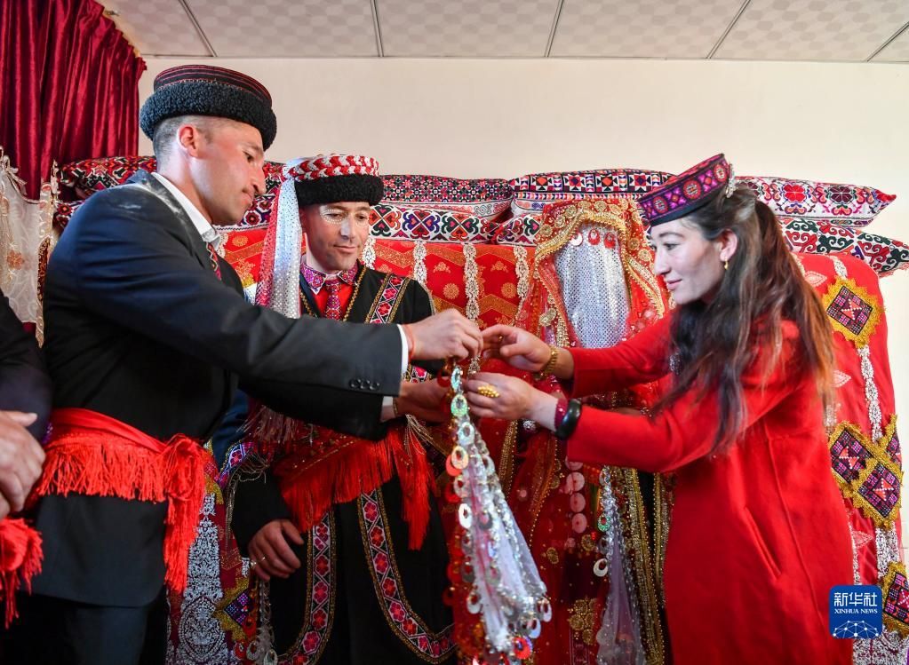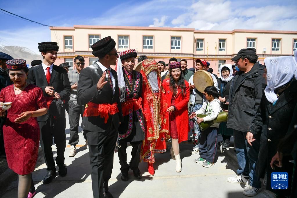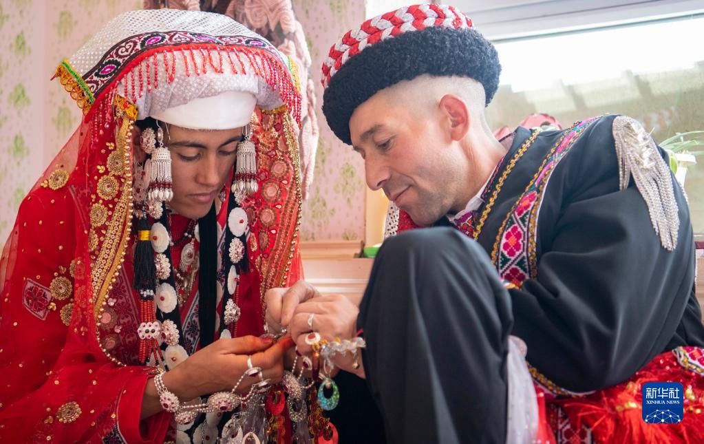 进入春季,在新疆塔什库尔干塔吉克自治县,不少男女青年选择在春日里成婚。近日,25岁的古丽汗·赞加比力和相恋三年多的买热买提汗·青铁木尔举行婚礼。仪式按当地民俗传统进行,气氛热烈隆重。