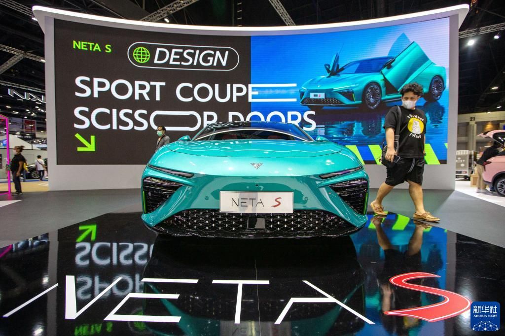 观众在泰国曼谷国际车展上参观哪吒S汽车。