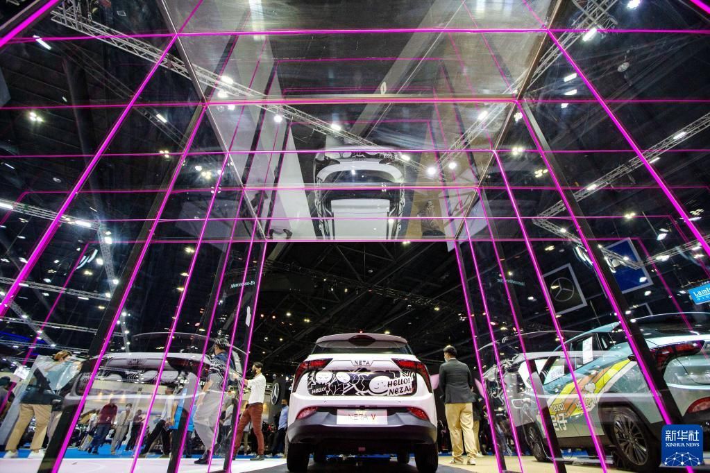 3月22日,观众在泰国曼谷国际车展上参观哪吒V汽车。