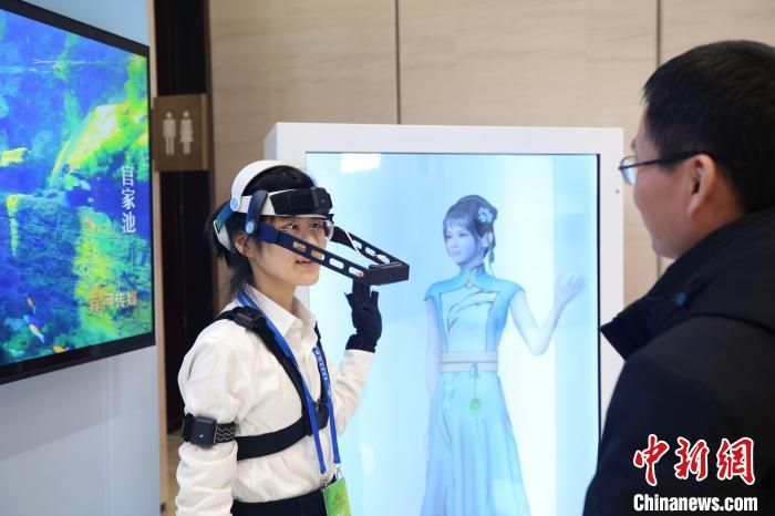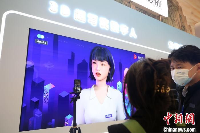 3月27日至28日,2023山东省旅游发展大会在青岛举行。在大会数字文旅互动体验区,依托数字“黑科技”展示的光影魔方、裸眼3D、元宇宙畅游、VR飞跃、“流浪地球”太空舱等项目吸引嘉宾参观体验,感受数字科技赋能文旅的魅力。图为“3D超写实数字人”项目吸引参观者目光。中新网