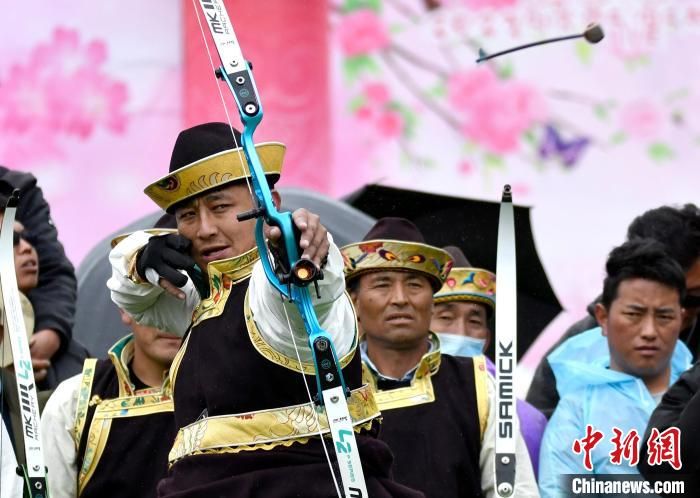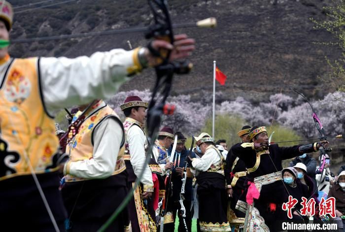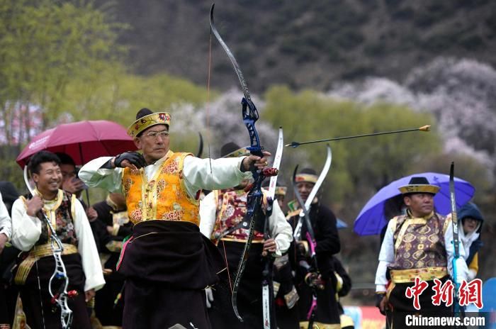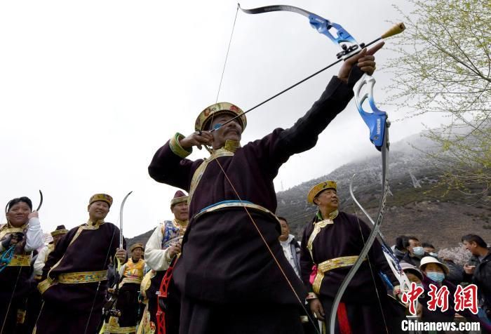 “工布响箭”藏语称“毕秀”,是西藏林芝特有的一项民间传统体育竞赛项目,距今已有1500多年历史,被列入第二批西藏自治区非物质文化遗产名录。图为3月28日,选手参加响箭比赛。