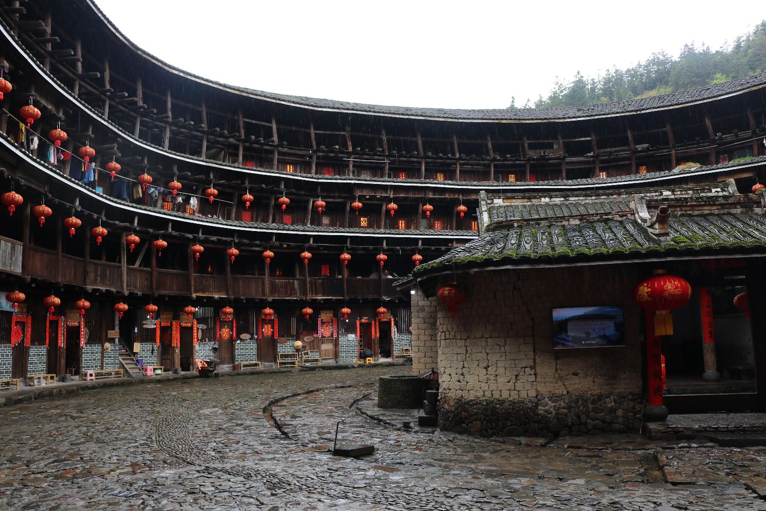 媒体代表们走进了著名土楼之一“裕昌楼”,参观其内部构造。裕昌楼又被称为“东歪西斜楼”,因其部分回廊支柱倾斜而得名,是已知最古老、最大的圆楼。该楼最初由五大姓氏族人共同兴建,现楼内仍居住着百余口人。南美侨报特约记者乔颖摄