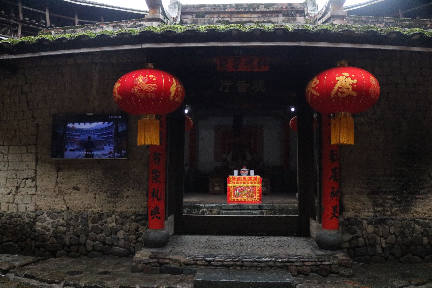 裕昌楼天井中心的单层建筑是祖堂,居民在这里进行祈神、祭拜等活动。南美侨报特约记者乔颖摄