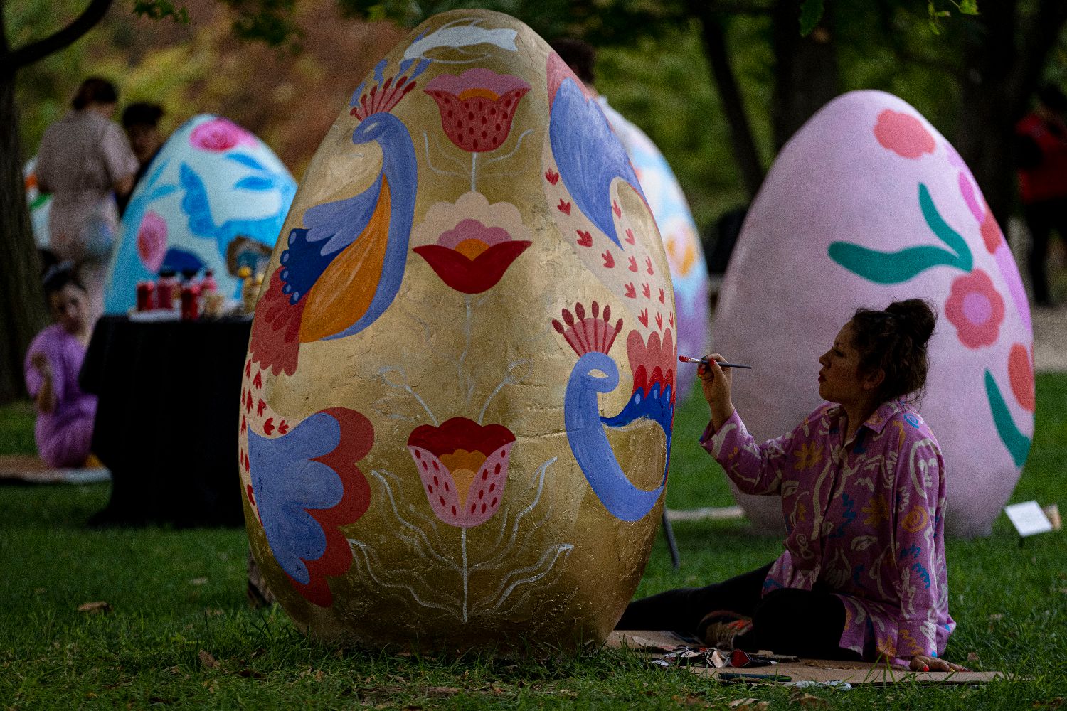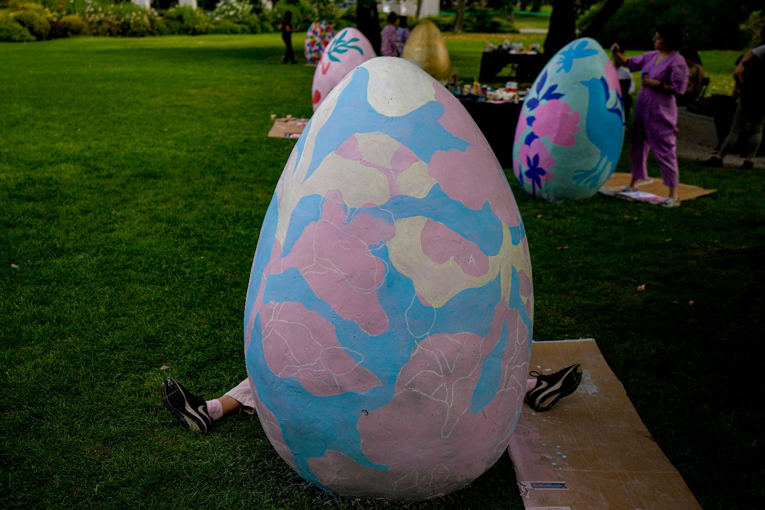 4月3日,在智利圣地亚哥,Parque Del Recuerdo公墓组织了一场名为“复活节色彩”的表演,智利插画家佩帕·埃斯皮诺萨 (Pepa Espinoza) 与其他艺术家一起绘制了一个复活节彩蛋。